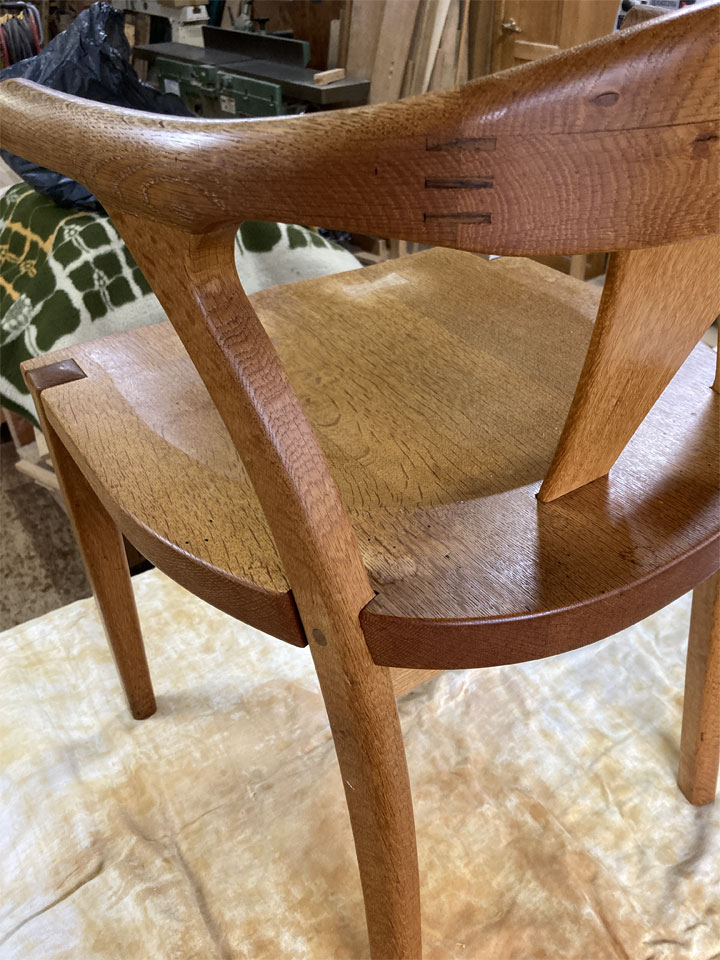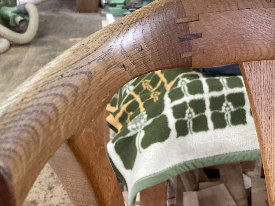ガタついてきていたにも関わらず、捨てることもなく大事に使っていただいたこと、しかもお亡くなりになった後もこうして「主人の大事にしていた椅子ですから直して使いたい」と奥様に言っていただいたことは、本当に望外の喜びです。