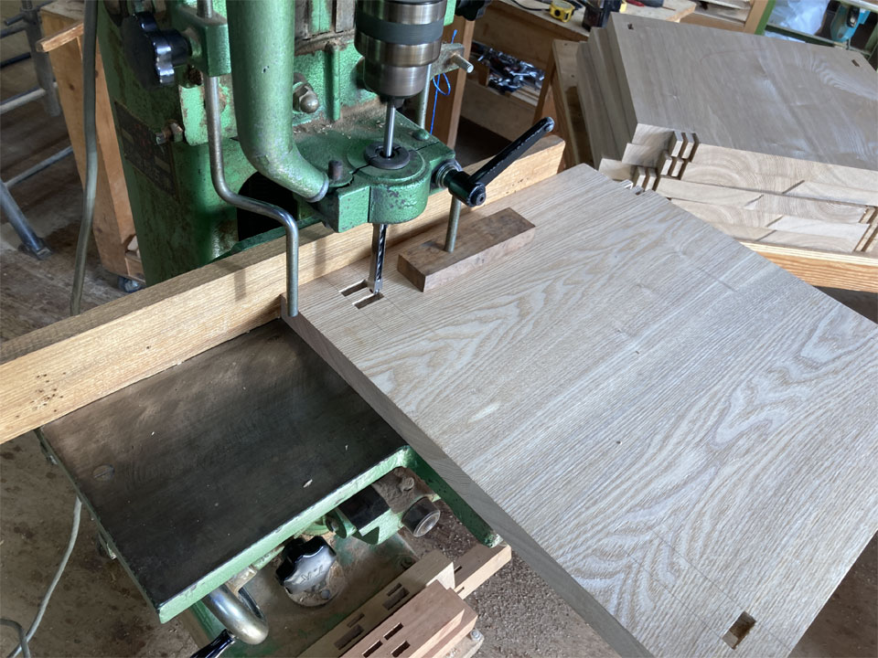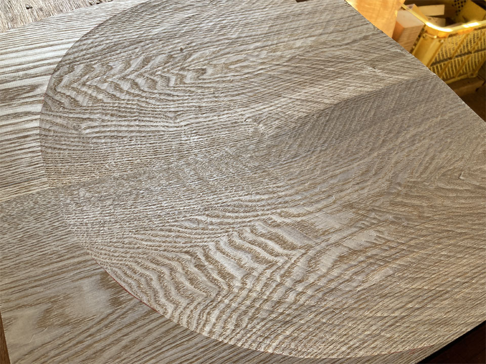 そして、いよいよ座板の座ぐりに入ります。電動工具を使って荒掘りをした後、「四方反り台鉋」という鉋で彫っていきます。