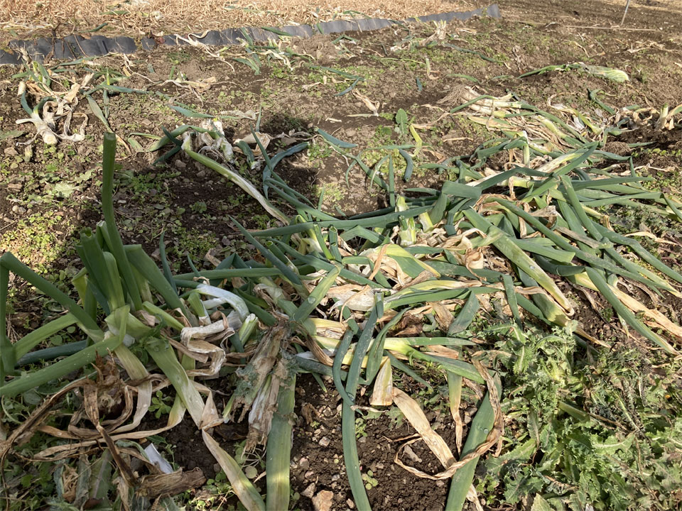 畑では冬野菜がたくさん育っていて、寒くなってきた中でどんどん甘みが増して美味しくなっています。ネギもダイコンもカブもその他葉物野菜も、買ってくる野菜よりよほど美味しいです。そんな中、きっちり猿の襲来に遭っています。玉ねぎの苗は、今年も上の方をかじり散らかして去っていきました。