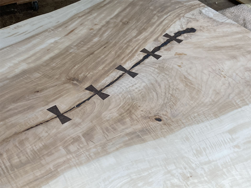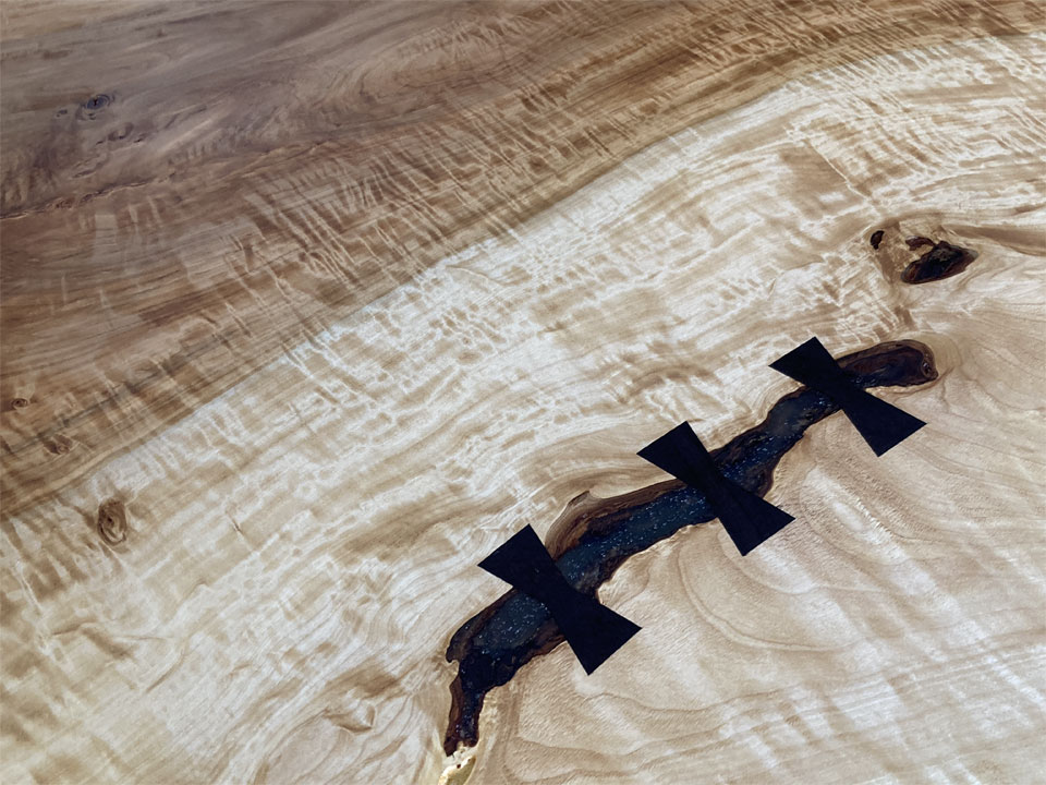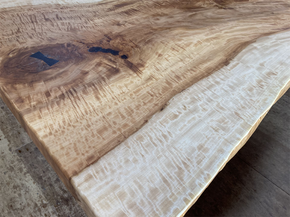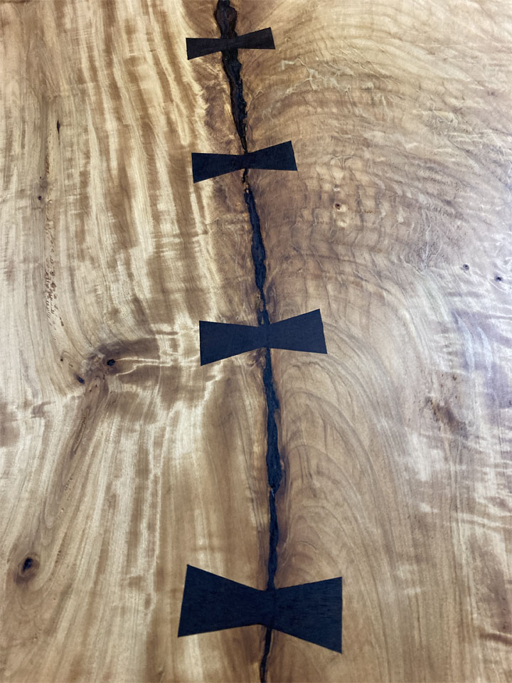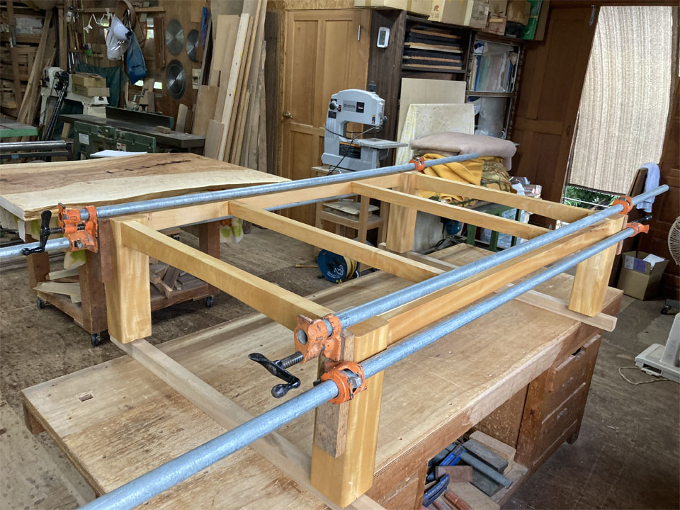 実はこの後も2件、同様の仕事が入っています。1件は無垢一枚板の座卓をテーブルにリメイクする仕事。こちらは10年前に納品させていただいた物です。極上杢の栃の無垢一枚板です。もう1件は3年前に納品させていただいた「厨子」の補修です。扉が少しきつくなったので直して欲しいとのことです。