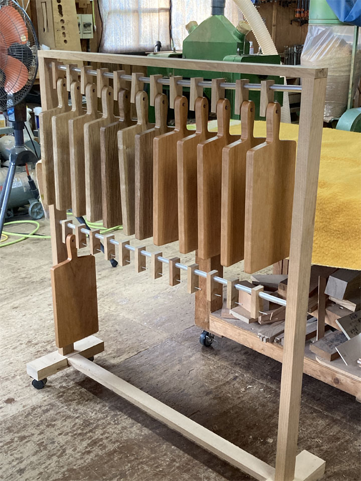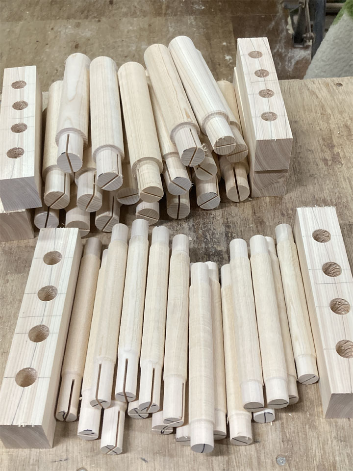ベニマツはもう材料が無いので(日本では入手は不可能な木材です)作らずにいたのですが、孫が生まれて本当に愛用しているのを見て、なんとか多くの方に使ってもらえたらと思い、材料をヒノキで作ることにしました。