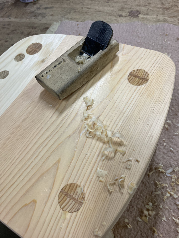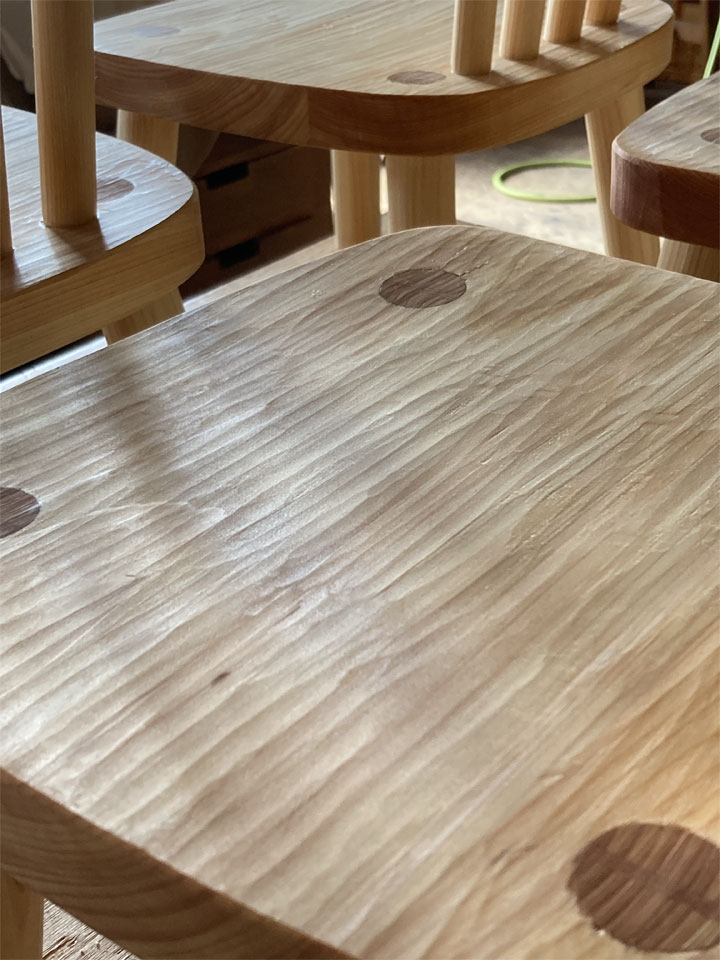 ※私はベニマツやヒノキなどの針葉樹を使った家具は、サンディングをせず鉋フィニッシュで仕上げることにしています。その方が美しいと感じるからです。