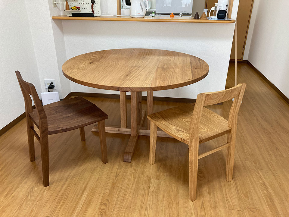 先日はありがとうございました。何も置かれてなかった新居の中心に素敵なダイニングテーブルが置かれ、空間が見違えるように暖かくなった気がします。胡桃の優しい雰囲気も良く、足のデザインも気に入っています。