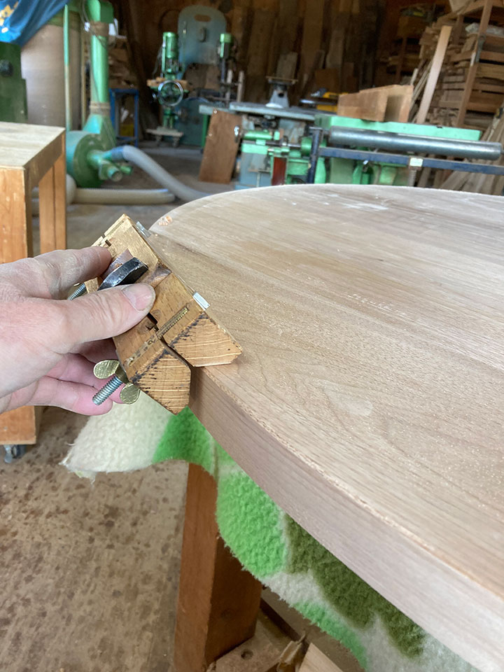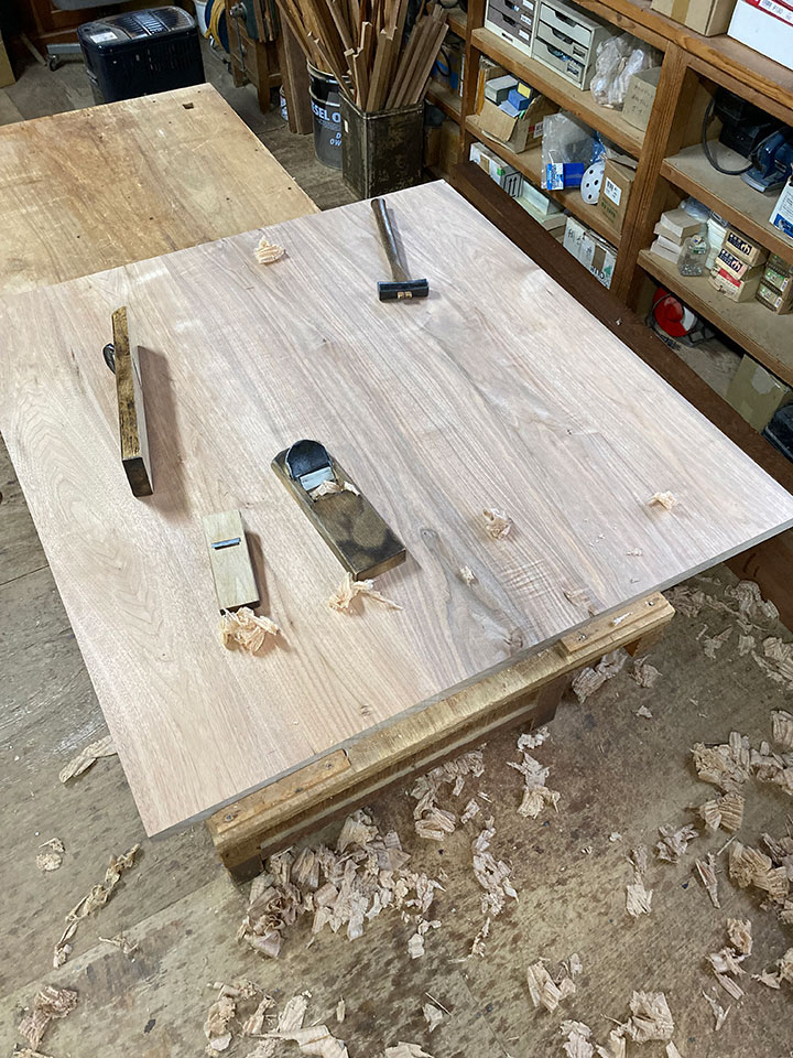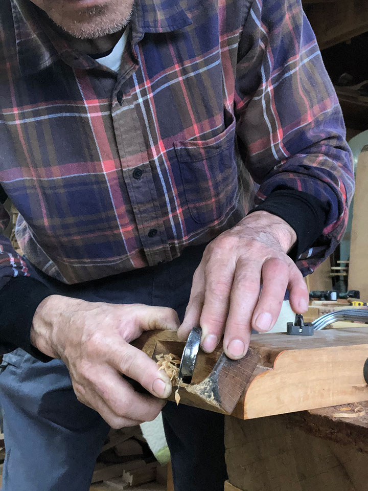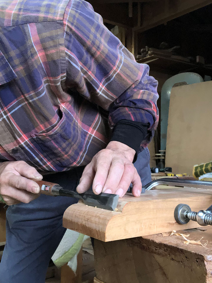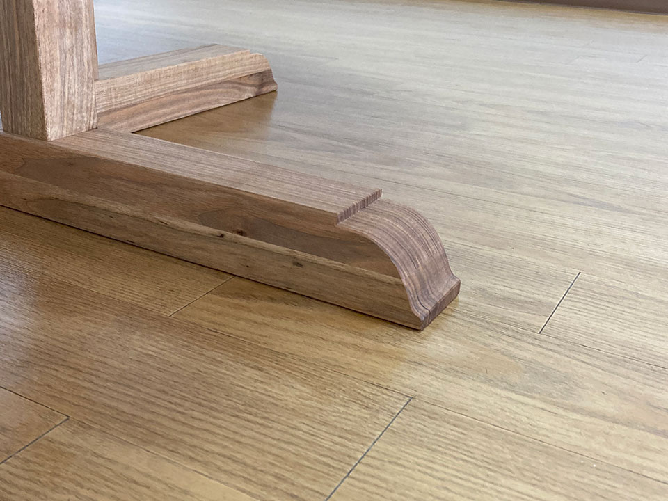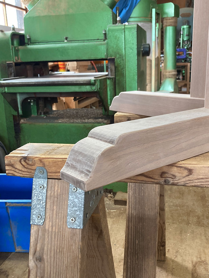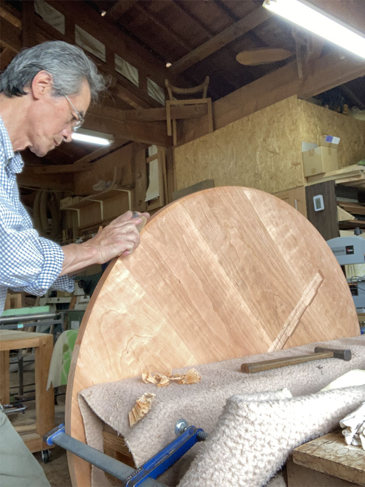 また仕上げは「手仕上げ」にこだわっています。天板や各部材の鉋仕上げ、脚部の飾り加工など、手工具を使っての手加工で行います。
