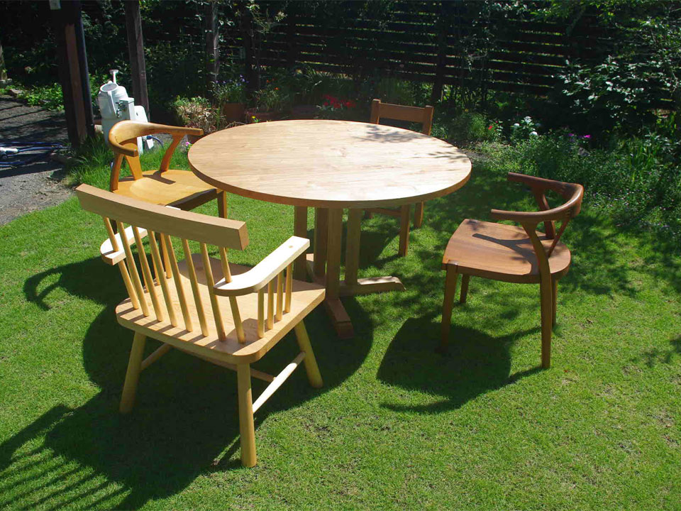 というのは何年か前に母屋の四畳半の座敷に置く丸型のちゃぶ台を作っていただき大変気に入っているからです。その時は胡桃でしたが今度は私の好きな山桜の木で作っていただきました。